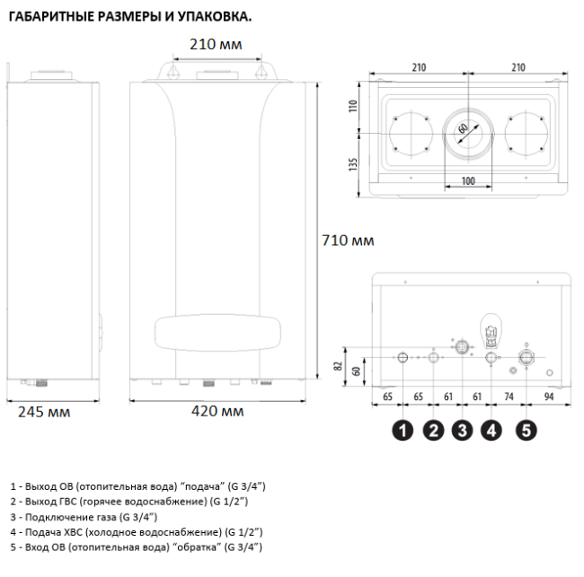 В комплекте коаксиальный дымоход 60/100 и датчик подключения бойлера косвенного нагрева.
