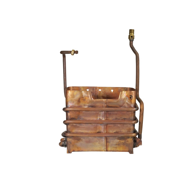 Назначение: Передача тепла от продуктов сгорания газа воде, проходящей по медным трубкам теплообменника. Материал: медь.